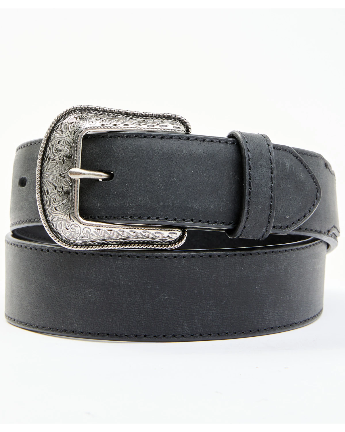 - Silver filigree-etched buckle
