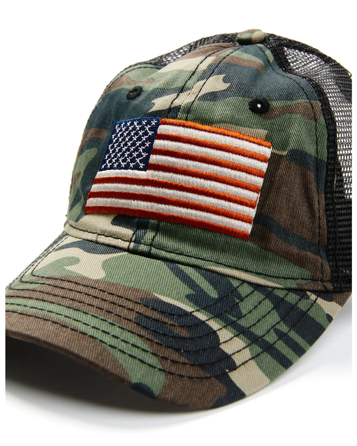 - Embroidered USA flag logo applique on front