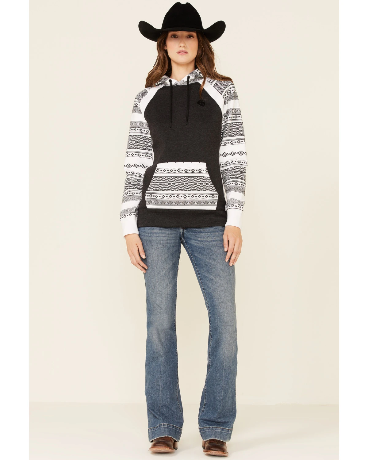 - Southwestern print on hood, arms and pocket