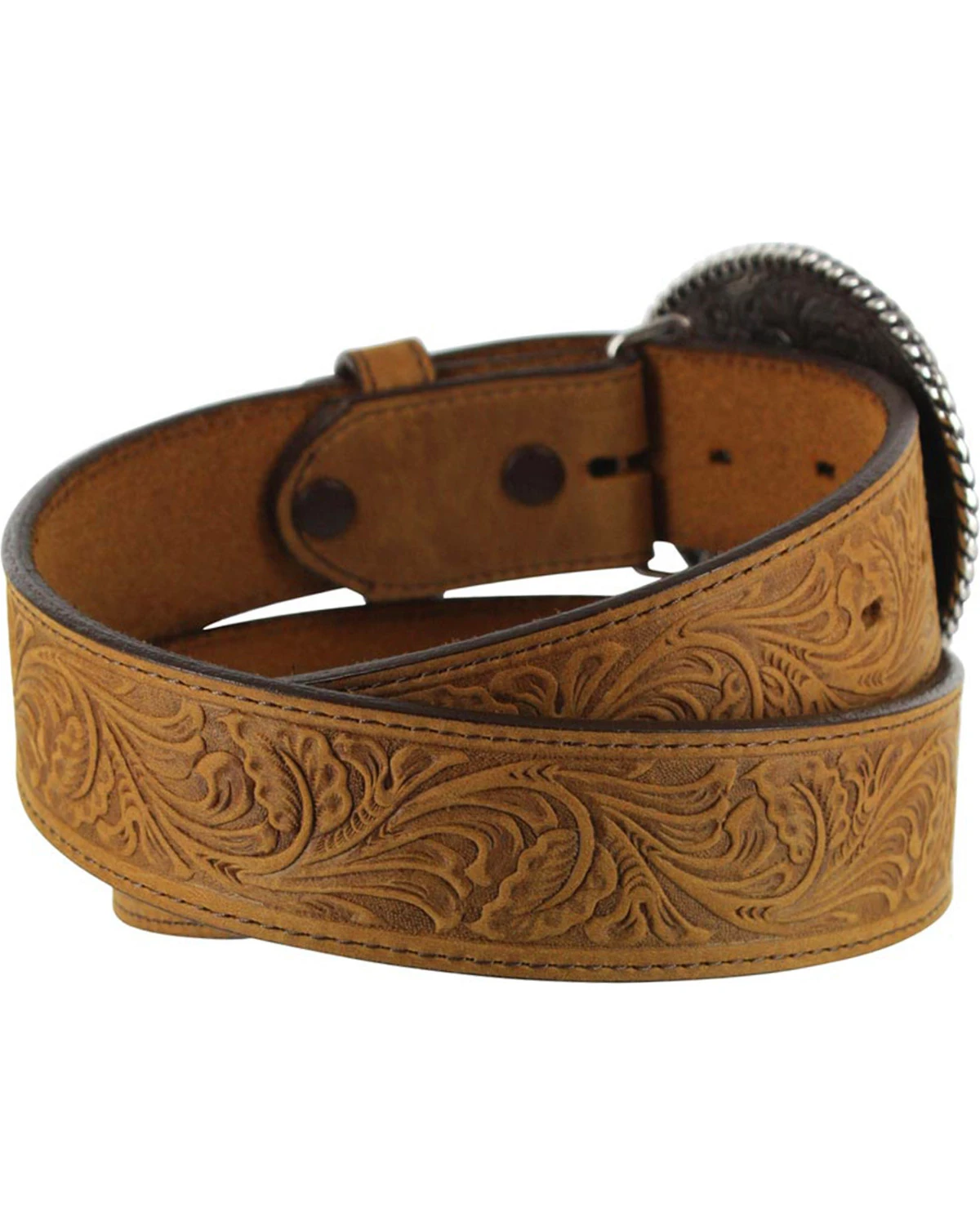 - Silver floral scrolling on buckle