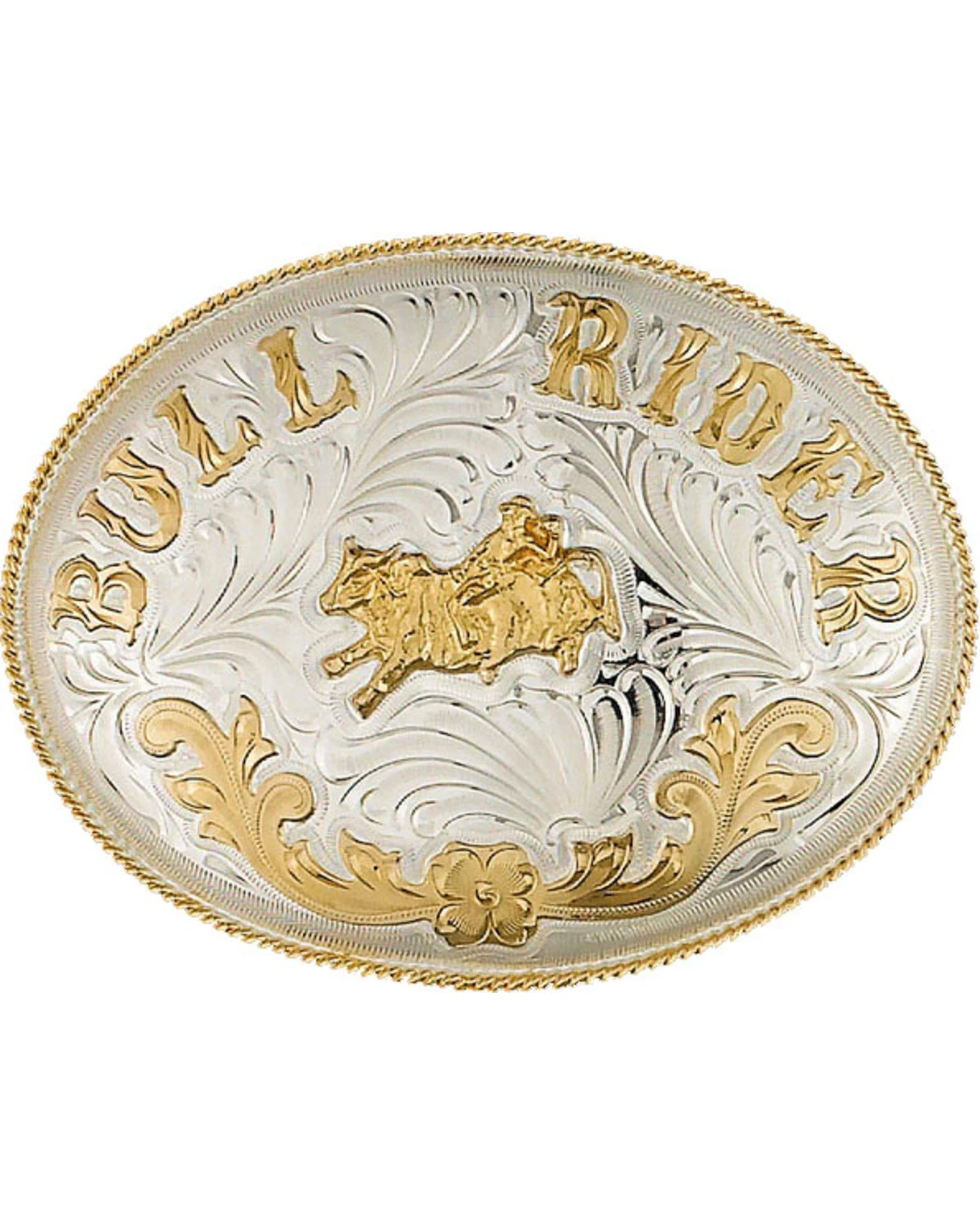 Get ready for the next rodeo coming to town when you pull on this belt buckle from Western Express. The center of this buckle depicts a bucking bull with a rider on its back. The bottom features gold-finished scrolling with the term “Bull Rider” across the top. Slip this buckle from Western Express onto your favorite belt for a classic look.